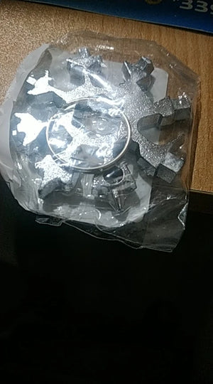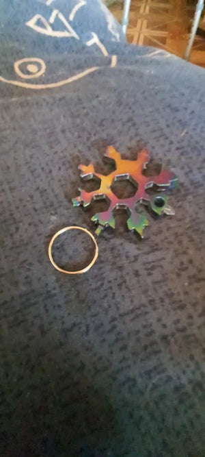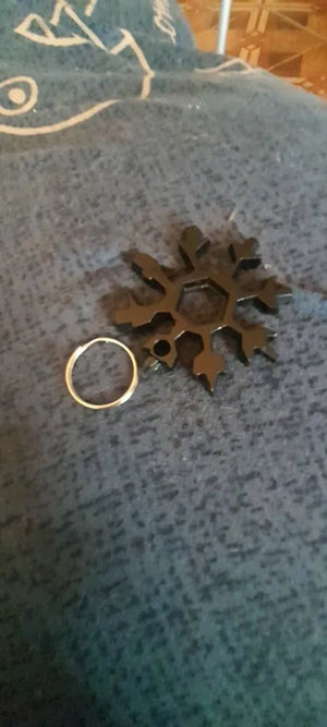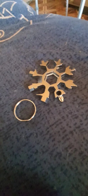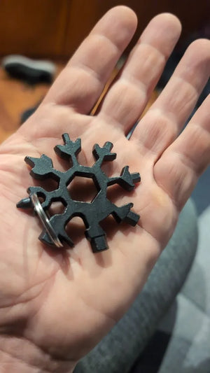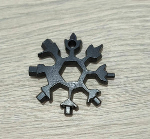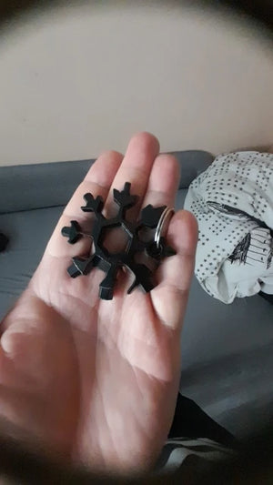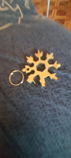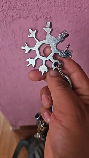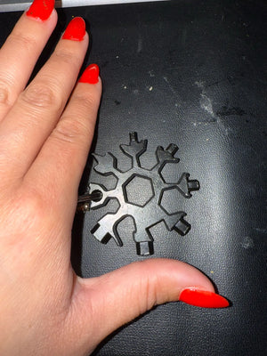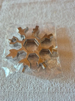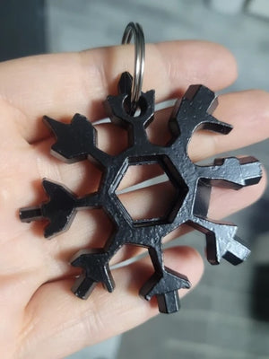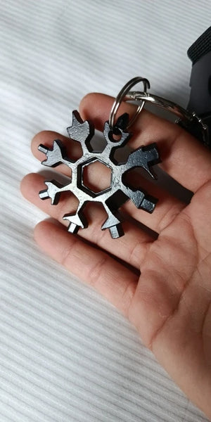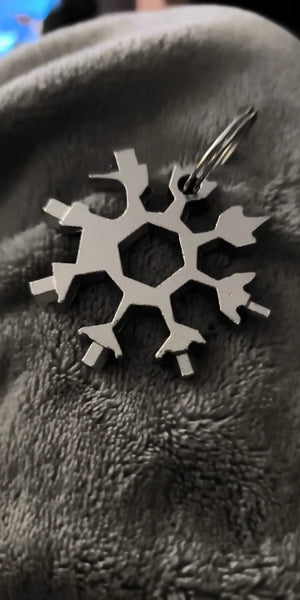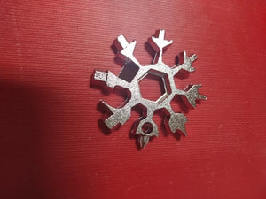 Enthalten sind verschiedene Schraubendreher, Maul- und Innensechskantöffnungen, Flaschenöffner sowie Cutter-Funktionen. Alle nützlichen Werkzeuge in einem kompakten Schneeflocken-Design.